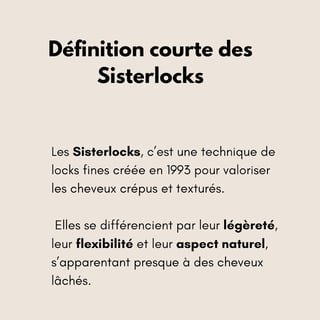 Soins experts pour des sisterlocks impeccables et un entretien sain des cheveux.